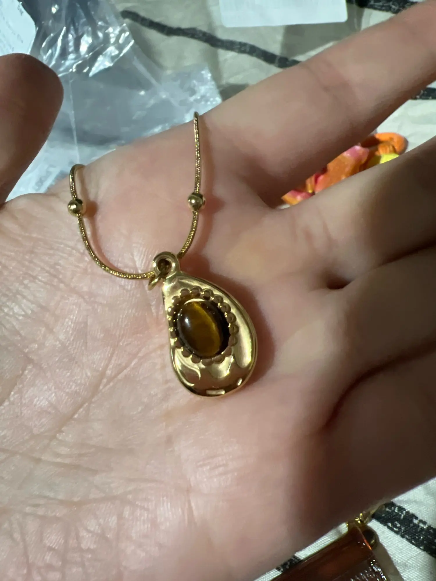 Contemporary Natural Tiger Stone Pendant 18K Real Gold Plating